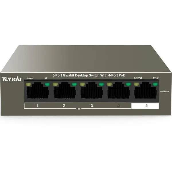 - Tenda TEG1105P-4-63W Desktop Switch, 5 Ports – White
